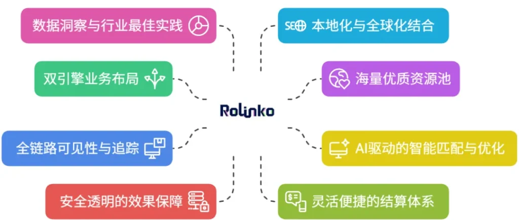 Rolinko 是基于AI的全球数字营销科技公司,我们的联盟客营销云致力于帮助中国出海品牌,通过联盟营销(Affiliate Marketing)、AI 搜索优化(GEO与AEO)等,实现海外业务的增长与品牌影响力扩大,以销售额增长为目标的效果营销解决方案,获得了全球3000+行业头部品牌的认可,至今已拥有500,000+全类型/全球化的联盟客资源,并与600+欧美头部媒体保持深度合作。